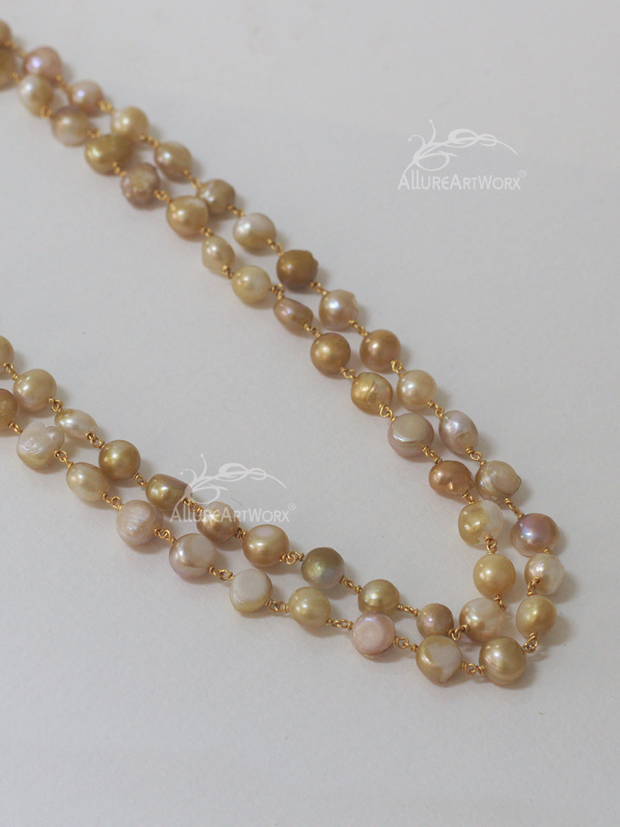 This neckpiece in fresh water pearlsin gold creamish and brown shade , can be worn on indowestern and traditional attires.