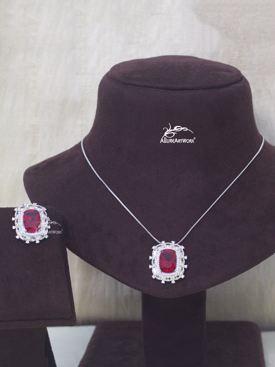 These Pendant Earrings along with chain in yellow gold plating,light yellow-red coloured stones and czs that can be worn on indowestern outfits.