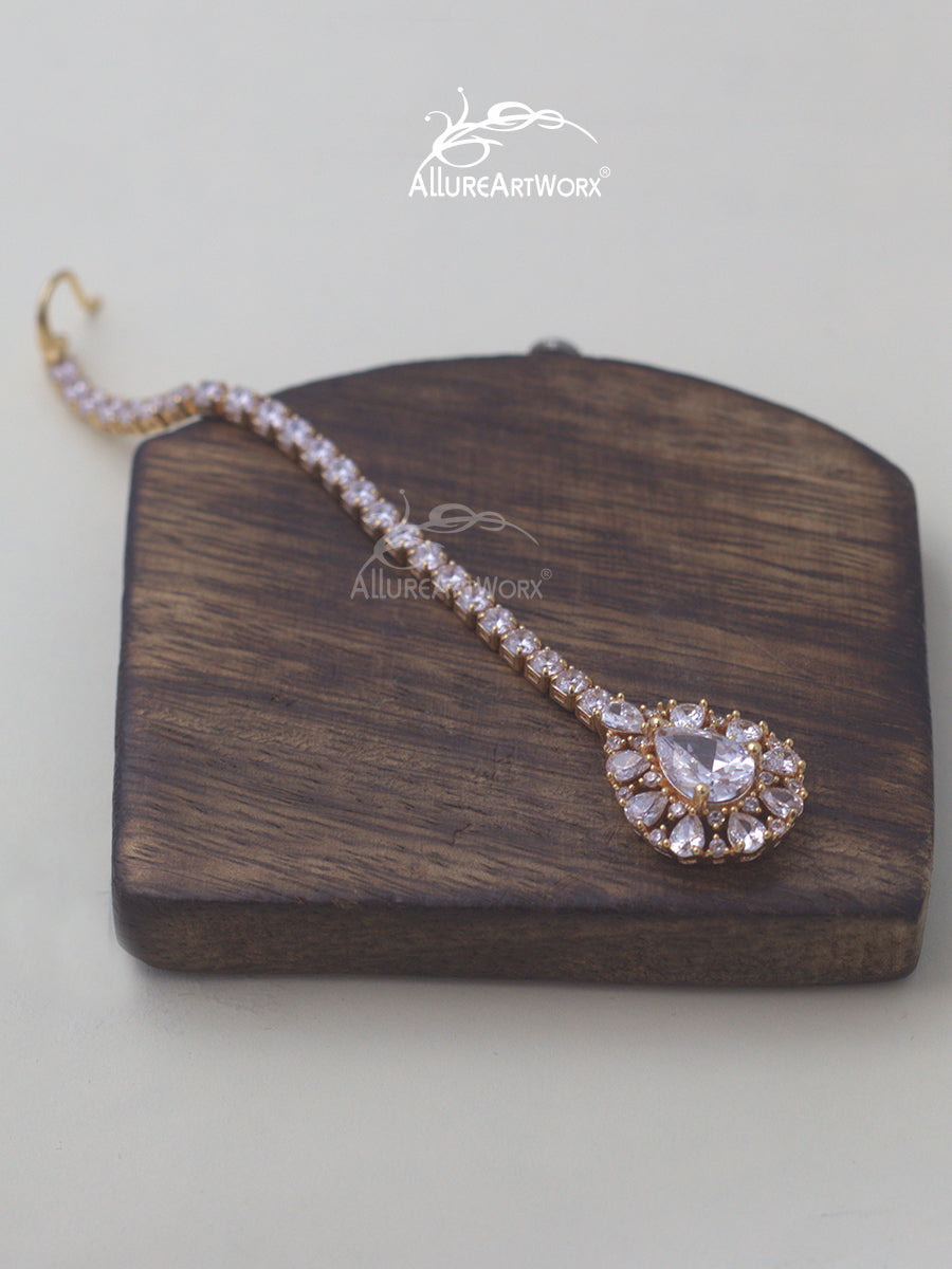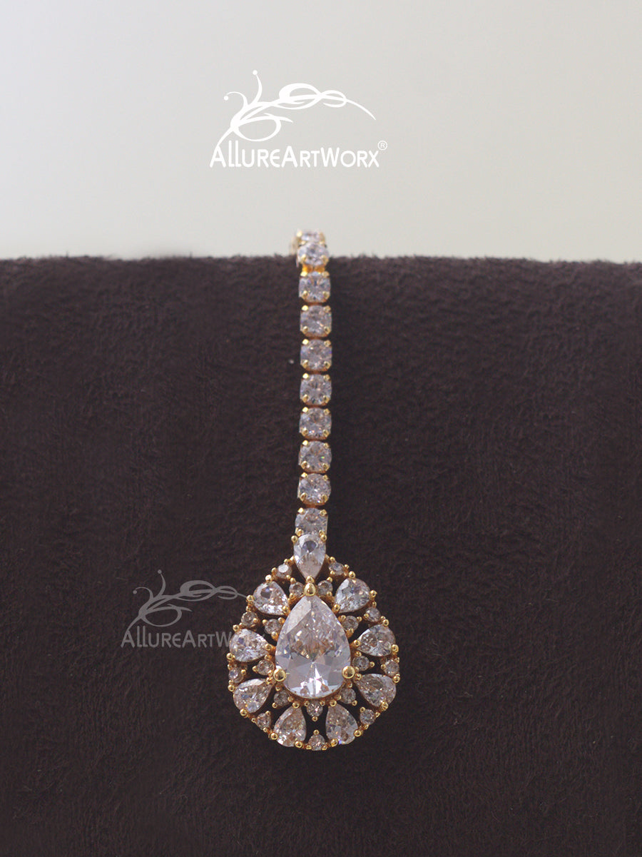 This maangtika with fancy cut czs can be worn on traditional outfits or indowestern outfits.It is recommended for small kids and teenagers.
