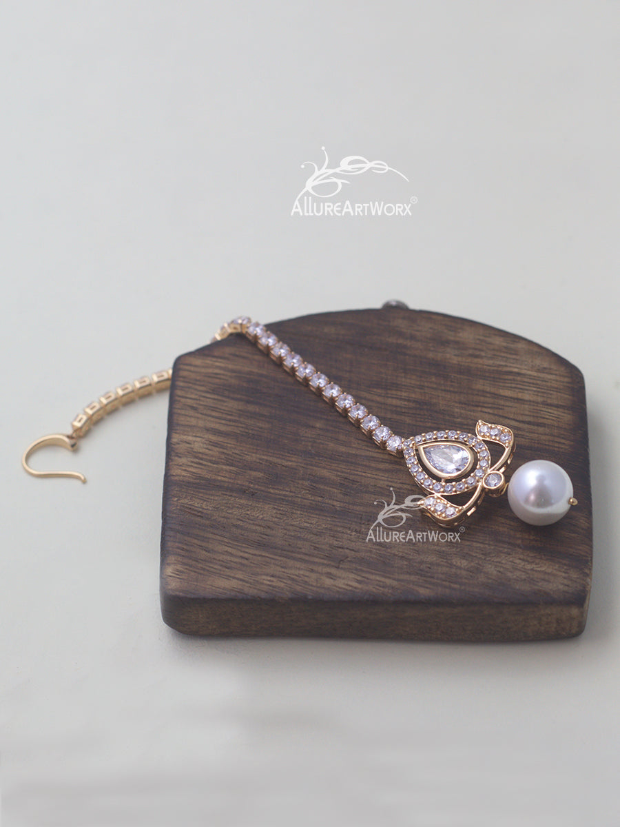 This maangtika with uncut czs can be worn on traditional outfits or indowestern outfits.