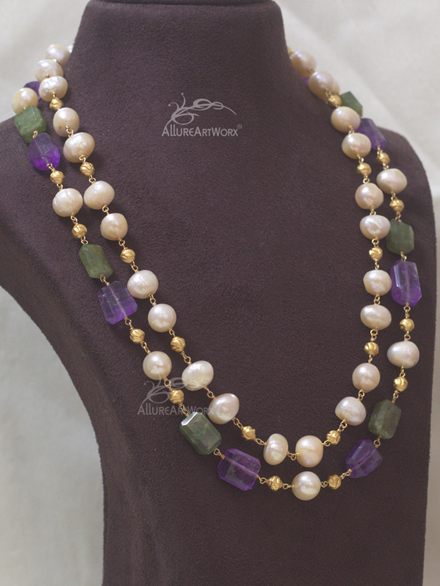 Note- Pearls,Amethyst and Grossular Garnet shape and shade may differ slightly as they are natural stone.It may have holes/retained raw skins or chipped skins.