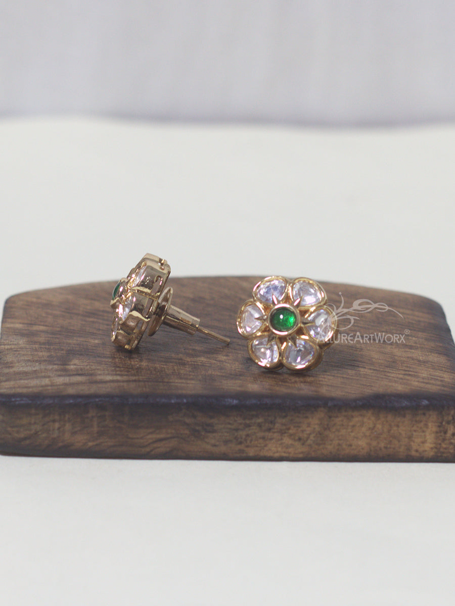 This earrings in kundan,green stones,and yellow karat gold plating can be worn on traditional outfits