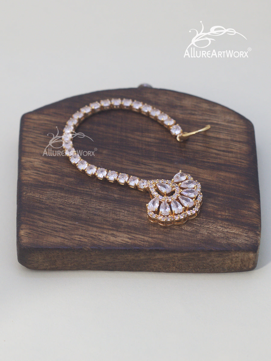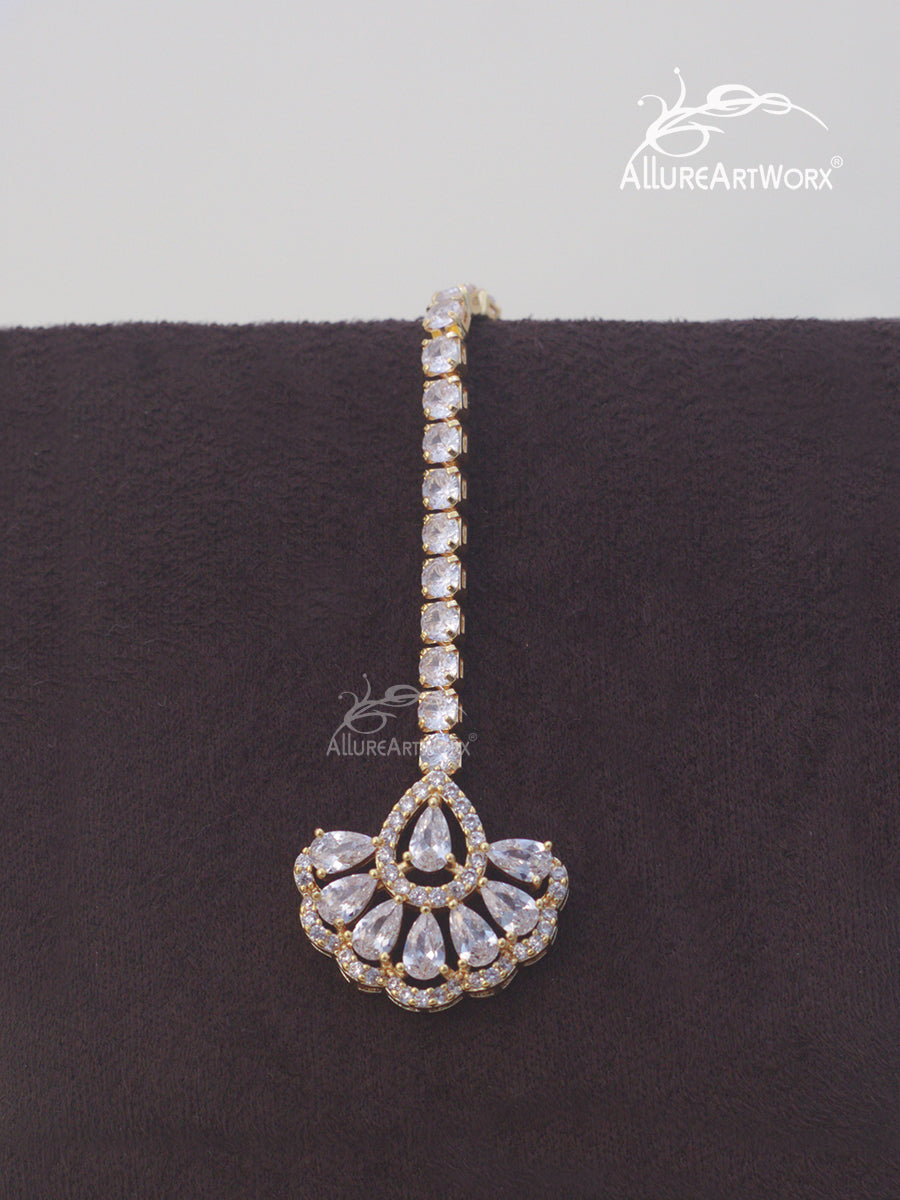 This maangtika with fancy cut czs can be worn on traditional outfits or indowestern outfits.